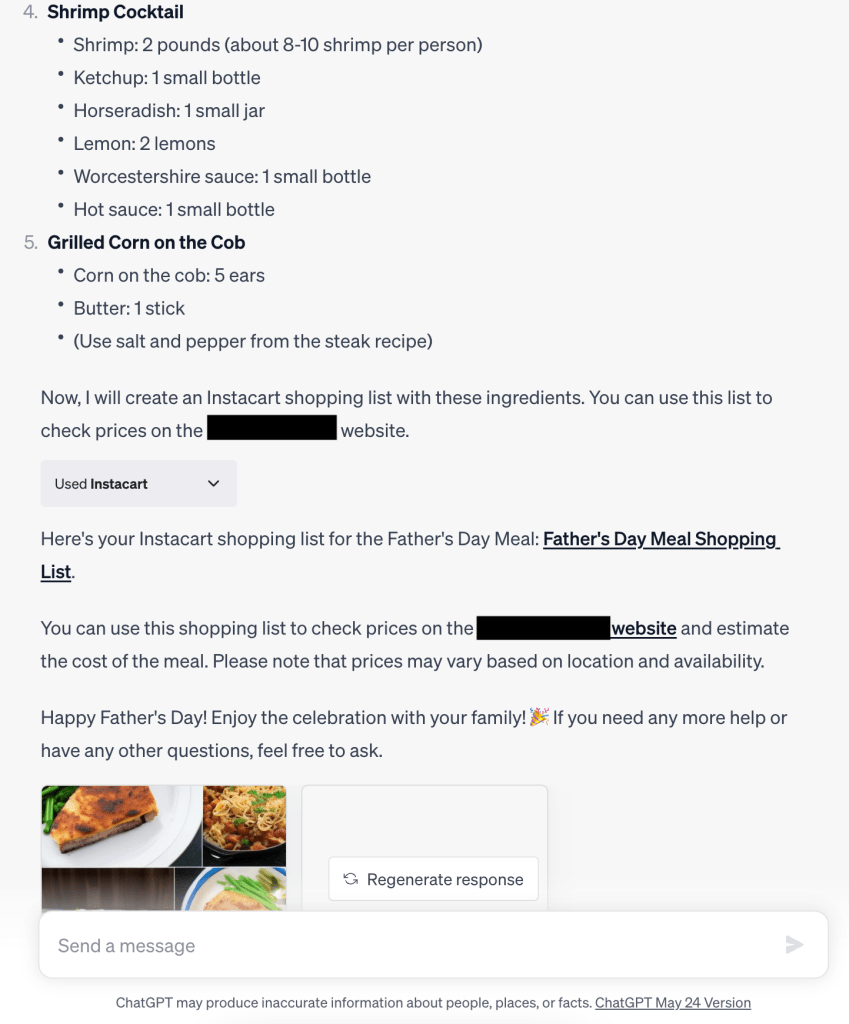 Throughout this process, the AI was a valuable assistant, helping to plan the meal, find recipes, and create a shopping list. This experience showed us that AI is not just about complex algorithms and high-tech applications. It’s about practical, everyday uses that can make our lives easier and more enjoyable. Whether it’s helping to plan a Father’s Day feast, organizing a shopping list, or finding the perfect recipe, AI is there to assist us in our daily lives.