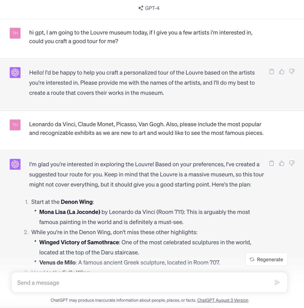 I turned to GPT-4 for a guide through the Louvre and it produced an excellent plan: